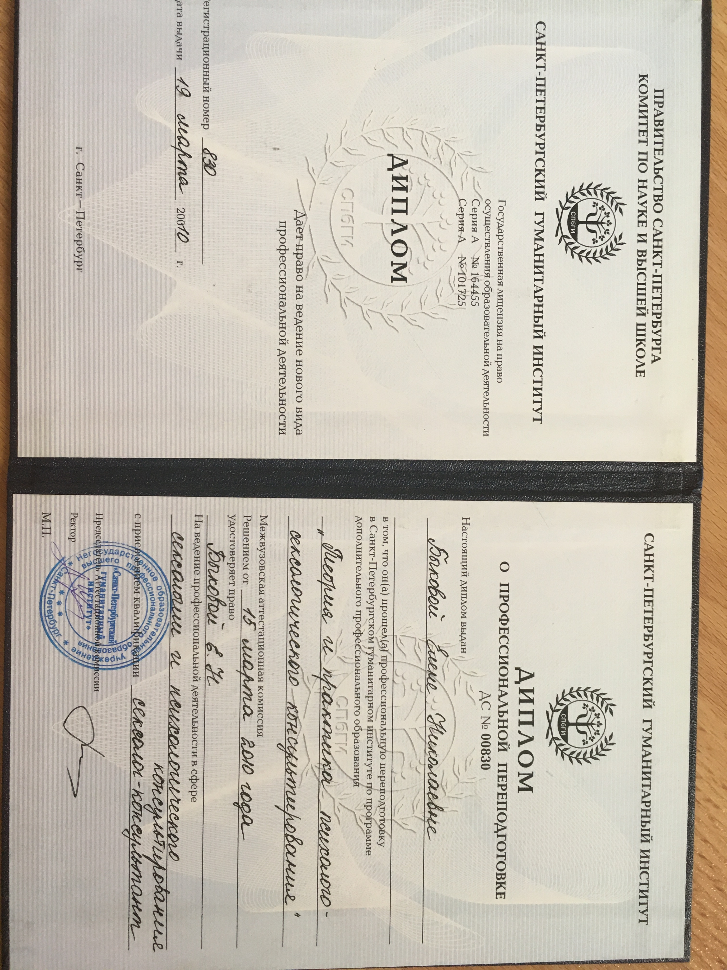 ЛГУ им. Пушкина, факультет: коррекционной педагогики и специальной психологии.
