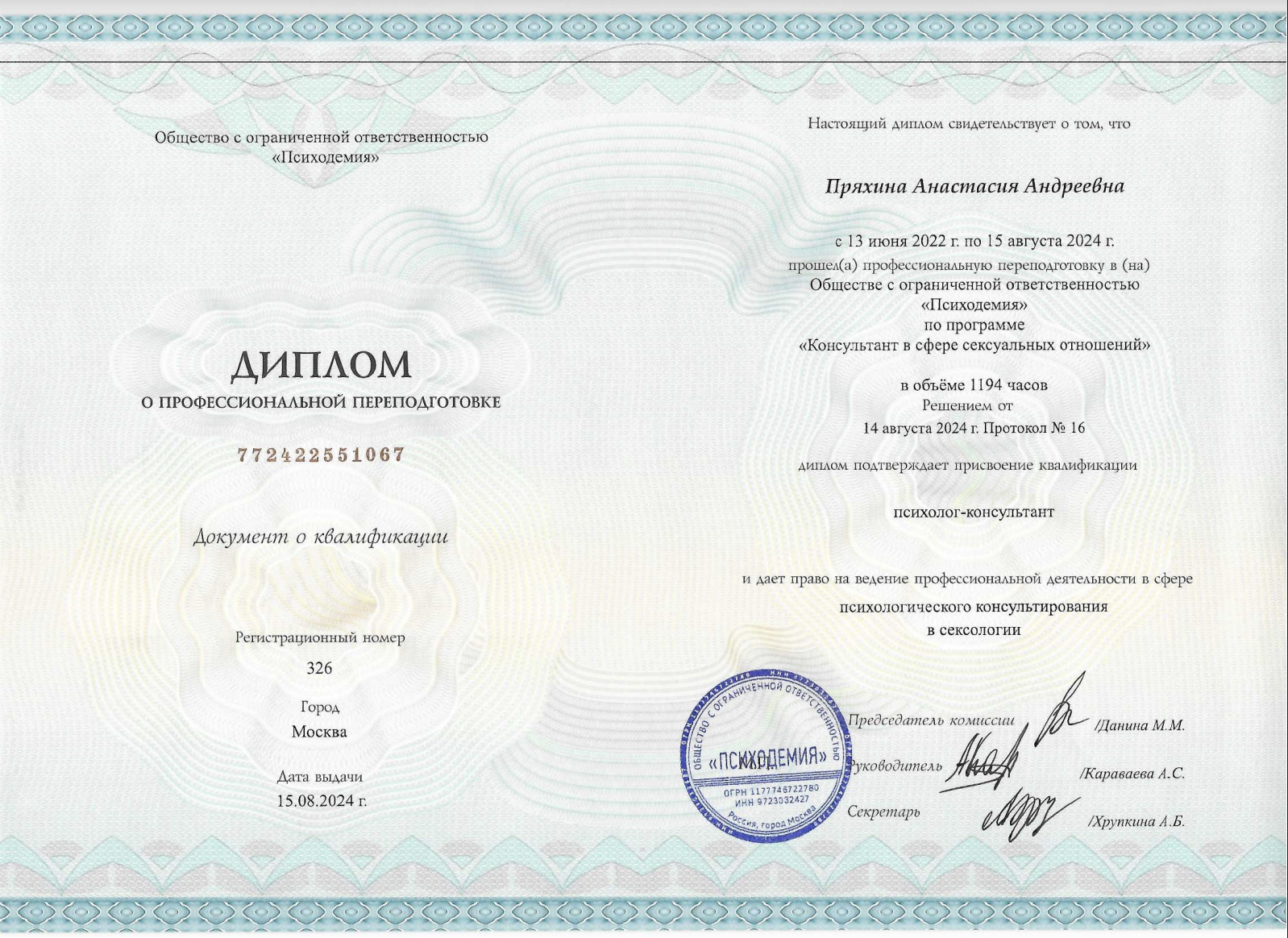 Открыть диплом Повышение квалификации